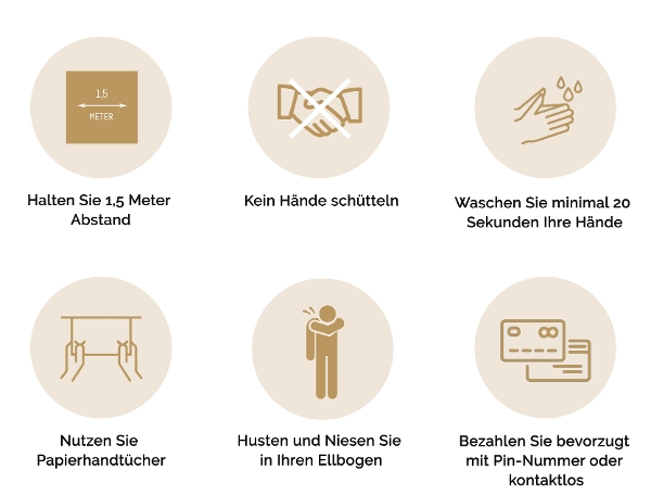 - Kein Hände schütteln mit anderen Gästen oder dem Hotelpersonal
